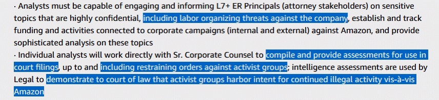 Amazon is hiring intelligence analysts to watch organized labor, hostile political leaders, more