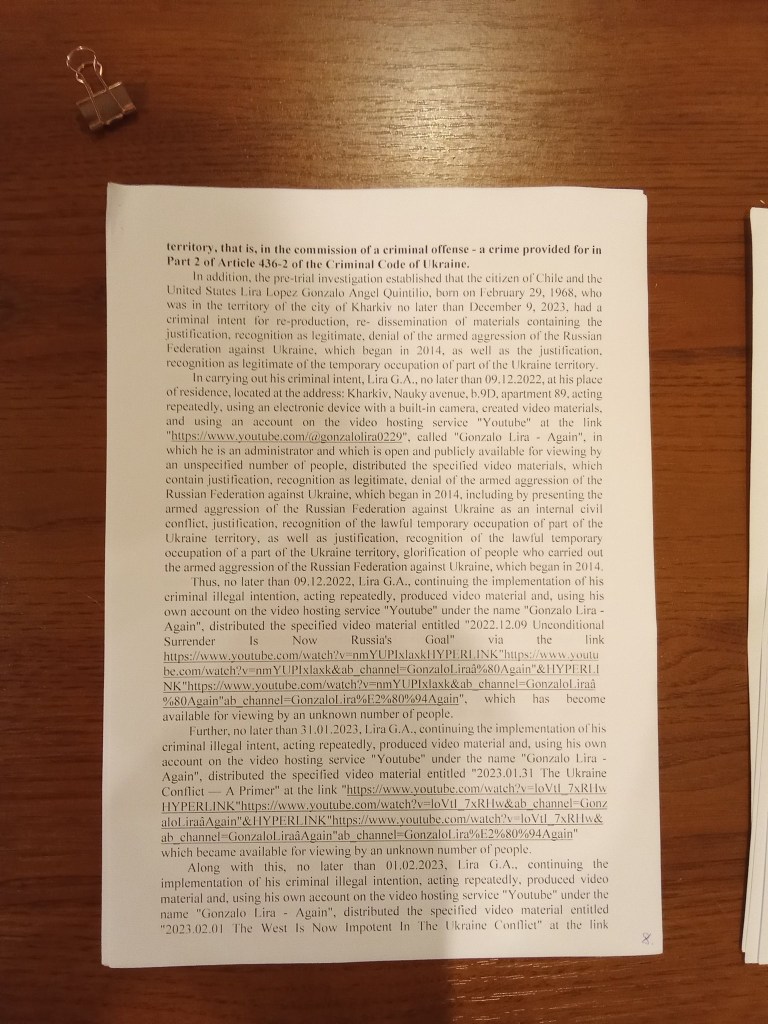 Chile / Europe / HUNGARY / Russia / Ukraine / United States / War Update: Gonzalo Lira! July 31, 2023July 31, 2023 Tina Marie (Ms. Cat) Twitter thread (ThreadReader) Twitter/X Related: YT: I’m About To Cross The Border 1/3 YT: I’m About To Cross The Border 2/3 YT: I’m About To Cross The Border 3/3 Twitter/X Share this: Share on Facebook (Opens in new window) Facebook Share on X (Opens in new window) X Share on LinkedIn (Opens in new window) LinkedIn Email a link to a friend (Opens in new window) Email Share on Threads (Opens in new window) Threads Share on Mastodon (Opens in new window) Mastodon Share on Bluesky (Opens in new window) Bluesky Like Loading... Related