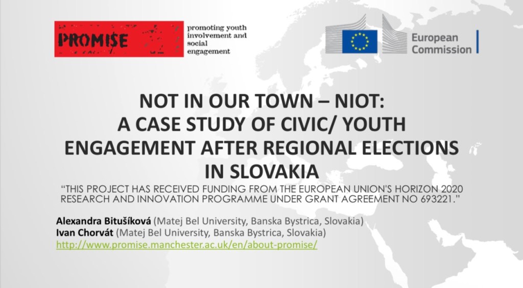 Outrage and despair led to collective action. In 2014, following numerous discussions among local groups – activists from various sectors supported by the Centre for Community Organising in Banská Bystrica (founded by an American citizen) – a new local civic platform, Not in Our Town (NIOT), was established in Banská Bystrica. The inspiration for this effort came from the Not in Our Town movement of 1995 in Billings, Montana, against hate-crimes, racism and bullying.