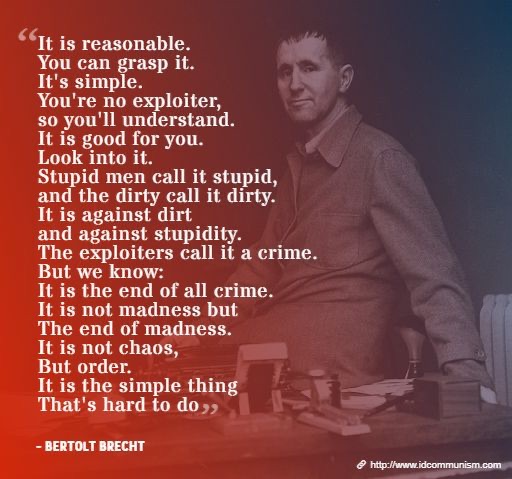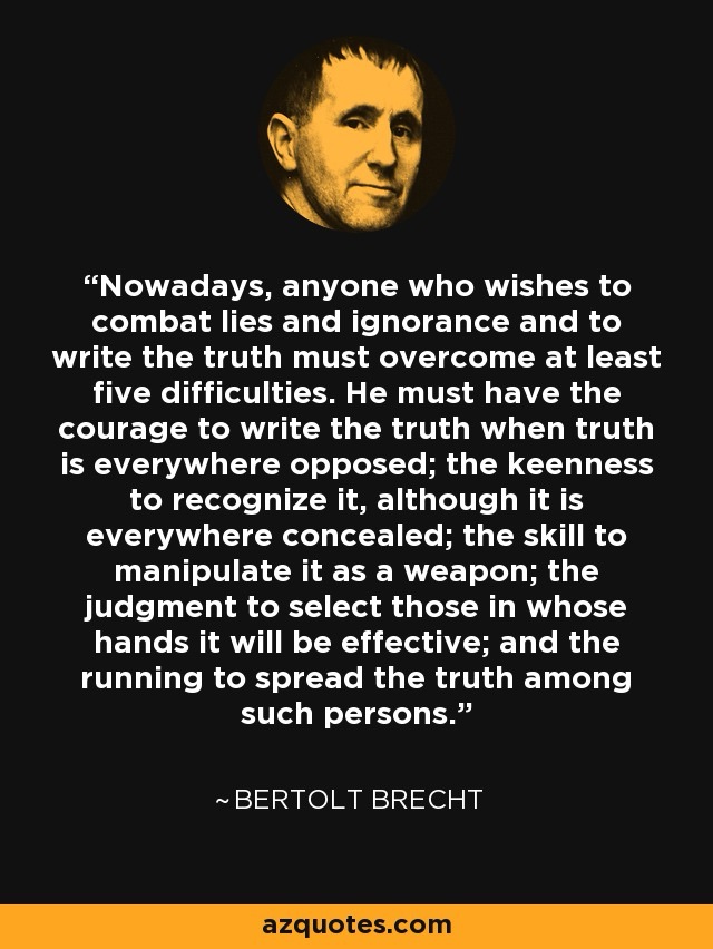 According to Wikipedia, following Khrushchev’s “Secret Speech,” Bertolt Brecht turned anti-Stalin. Not only did Khrushchev lie, but the CIA also altered the speech. It’s a shame, as many of his quotes and poems are good.