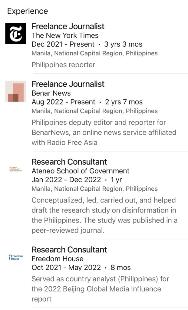 Marites Vitug is/was an editor at Omidyar-funded Rappler.