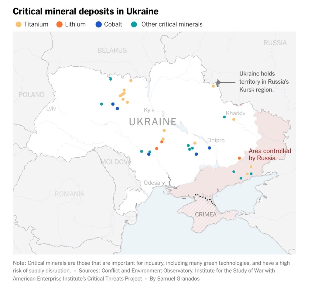 Ukraine controls more than 100 major deposits of critical minerals, according to a study by the Kyiv School of Economics, along with modest oil and natural gas reserves.