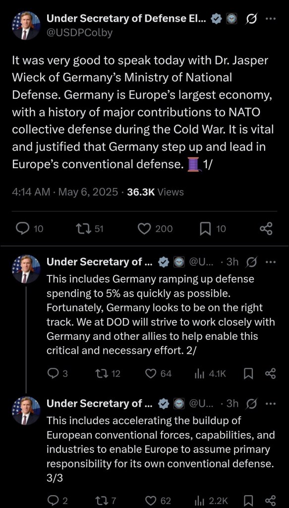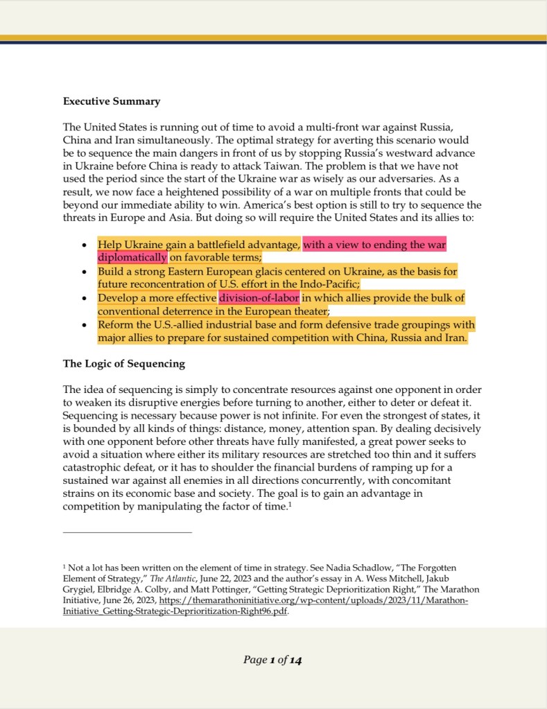 Trump appointed neocon warmonger Elbridge Colby on the “division of labor” between the US and Europe regarding Washington and Wall Street’s 2 front confrontation with Russia and China…