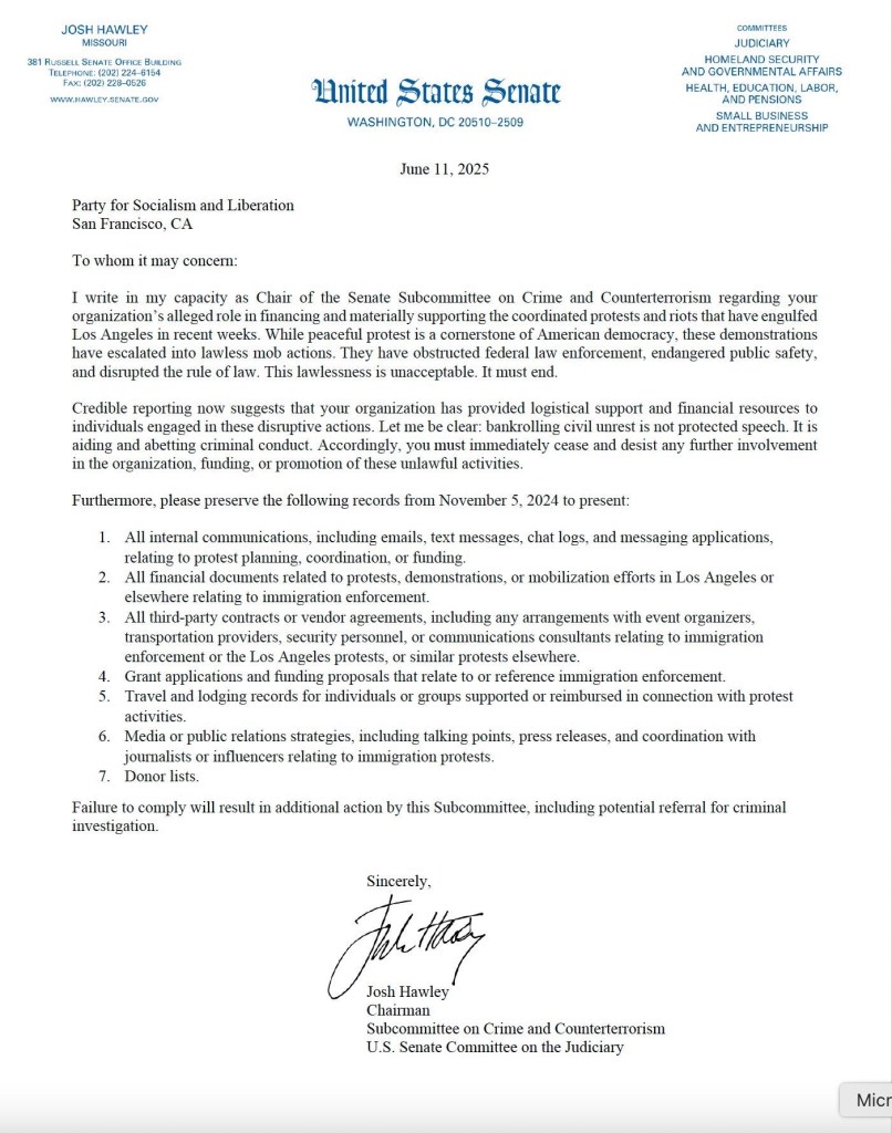 U.S. government harassing & violating the rights of Party for Socialism and Liberation