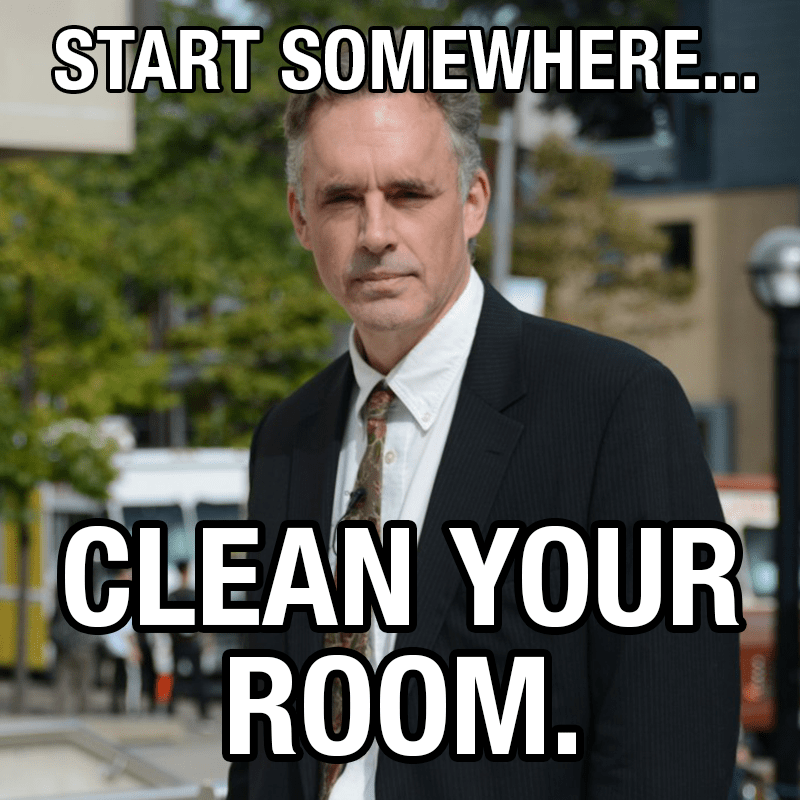 Jordan Peterson famously uses the metaphor “clean your room” to promote personal responsibility and self-improvement. The often-cited quote—“If you can’t even clean up your own room, who the hell are you to give advice to the world?”—captures his belief that before attempting to fix external problems, individuals should first address their own shortcomings. While he initially framed this idea in response to millennials seeking economic change, its application is far broader.