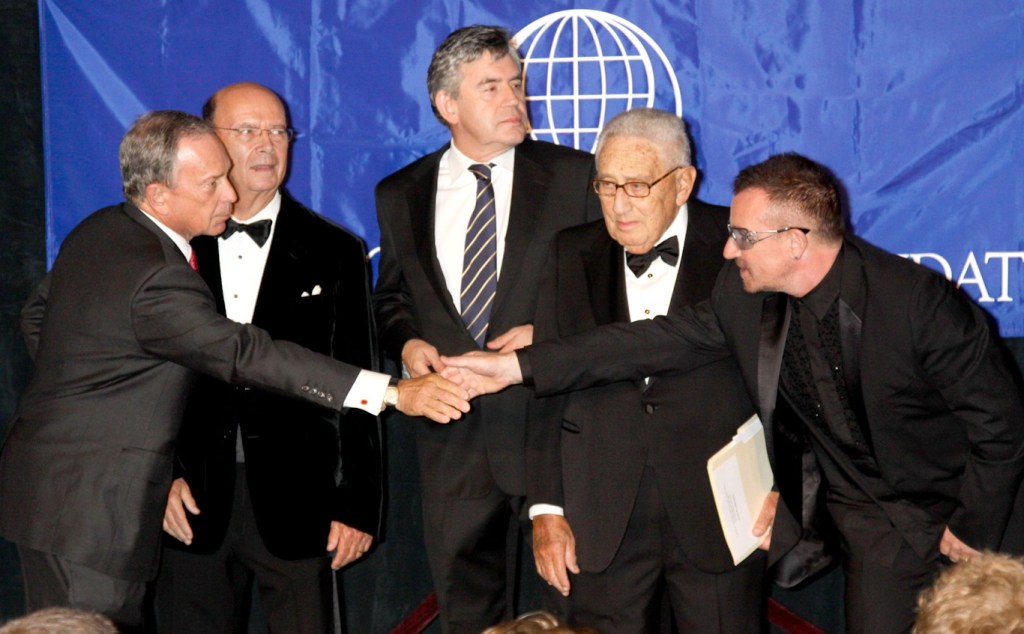 From left to right, Mike Bloomberg, Wilbur Ross , Gordon Brown, Henry Kissinger and Bono at the 2009 Appeal of Conscience Foundation Fundraiser. Photo | Alamy