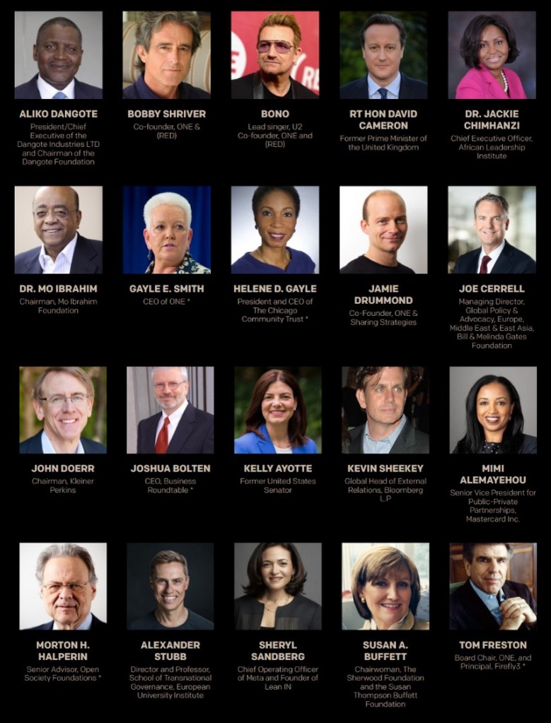 From Facebook to the US government, the ONE Campaign’s Board of Directors represents the world’s most powerful interests. Source | ONE Campaign