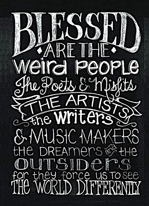 United States My Favorites From “The Thought for the Week Collection” October 20, 2025 Tina Marie (Ms. Cat) The Thought for the Week Collection The IT Crowd This phrase is by author Jacob Nordby, who also wrote the book Blessed Are the Weird: A Manifesto for Creatives. Share this: Click to share on Facebook (Opens in new window) Facebook Click to share on X (Opens in new window) X Click to share on LinkedIn (Opens in new window) LinkedIn Click to email a link to a friend (Opens in new window) Email Click to share on Threads (Opens in new window) Threads Click to share on Mastodon (Opens in new window) Mastodon Click to share on Bluesky (Opens in new window) Bluesky Like Loading... Related