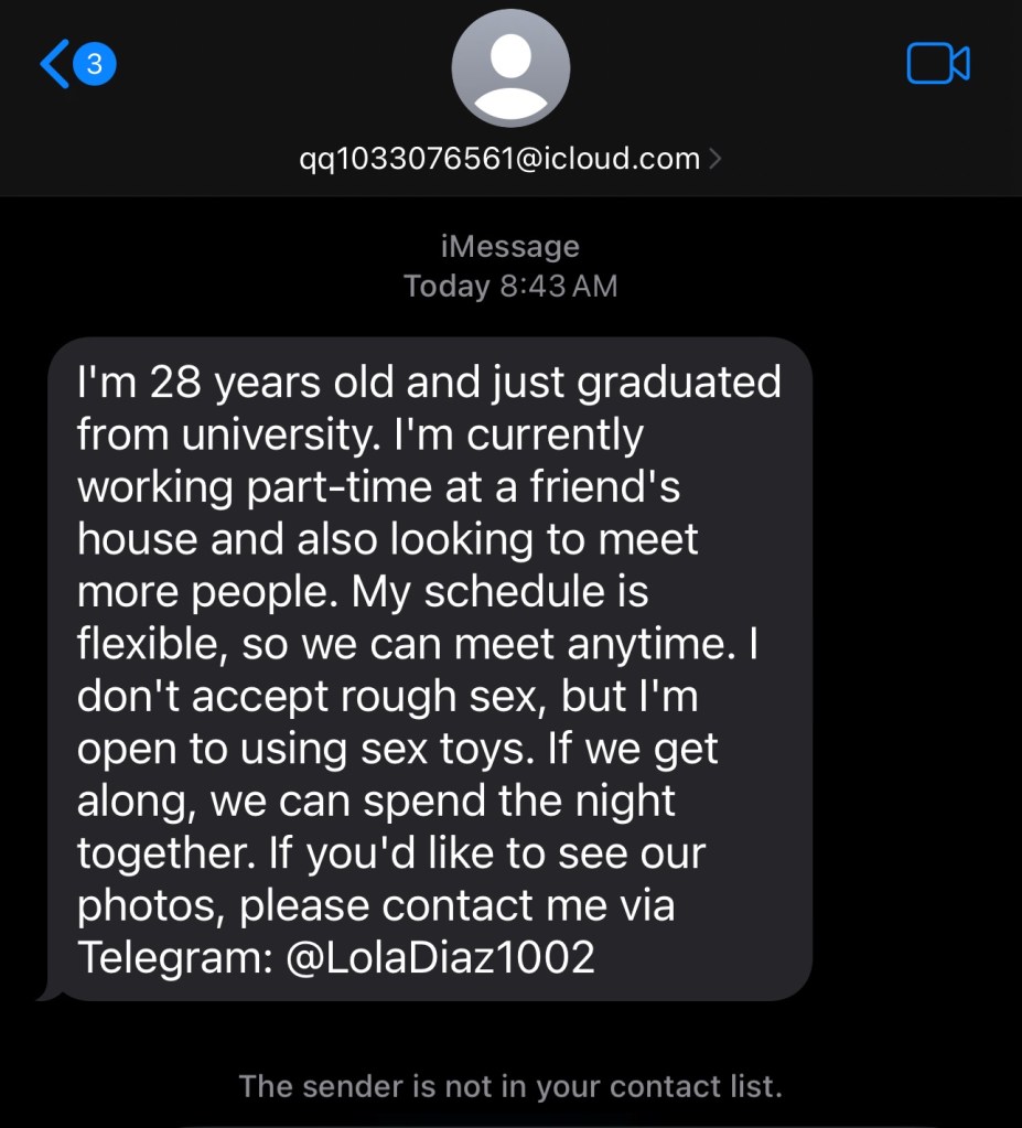 I briefly thought the universe had finally handed me my very own “pretty young thing” when this spam text slid into my phone. I’ll admit, my hopes took a tragic hit when I learned she “doesn’t accept rough sex.” Truly devastating.