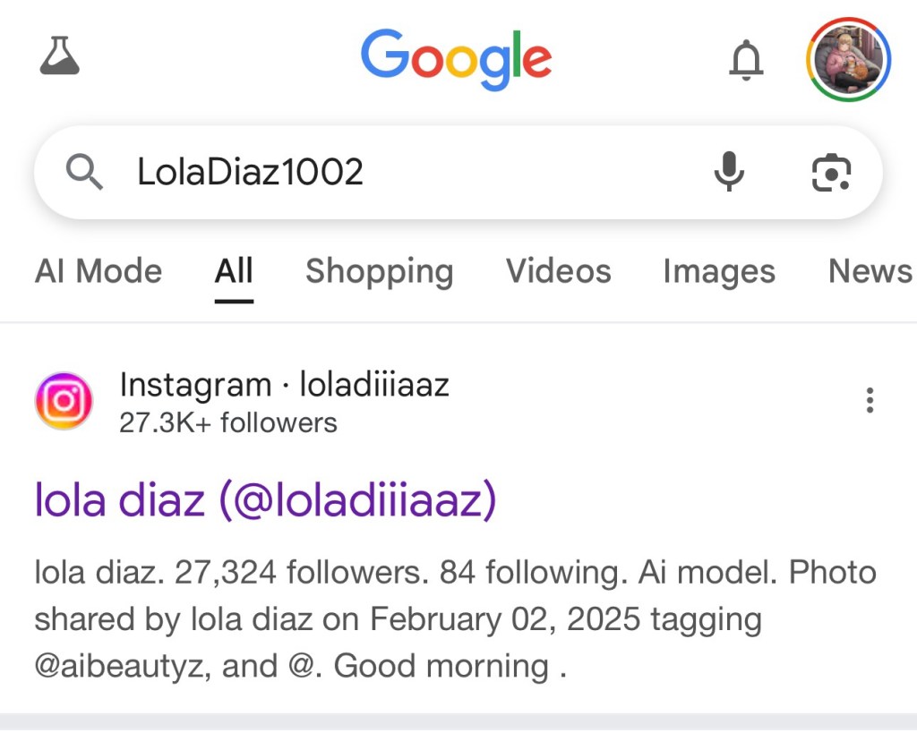 Naturally, I Googled my mysterious admirer… and voilà. She’s an AI model. Not even a creative scammer—just a recycled digital face with 30,000 people already drooling over her.