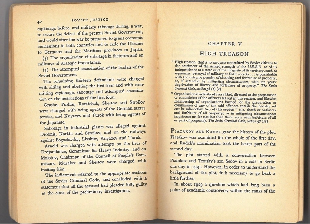Britain / Germany / History / Japan / Russia / Ukraine / United Kingdom Soviet Justice and the Trial of Radek and Others: High Treason February 20, 2026February 21, 2026 Tina Marie (Ms. Cat)Leave a comment Soviet Justice and the Trial of Radek and Others : Dudley Collard Share this: Share on Facebook (Opens in new window) Facebook Share on X (Opens in new window) X Share on LinkedIn (Opens in new window) LinkedIn Email a link to a friend (Opens in new window) Email Share on Threads (Opens in new window) Threads Share on Mastodon (Opens in new window) Mastodon Share on Bluesky (Opens in new window) Bluesky Like Loading... Related