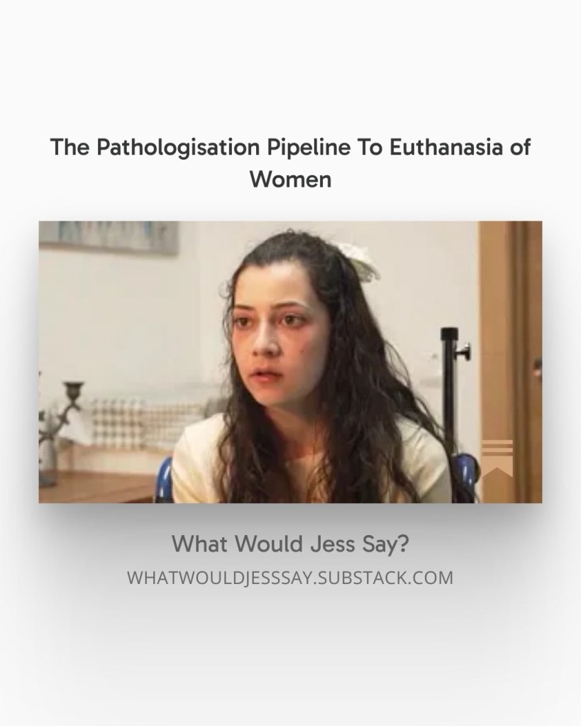 This pattern is proliferating everywhere. National and international statistics confirm that the group of people most likely to die by euthanasia for ‘mental health’ are young women.