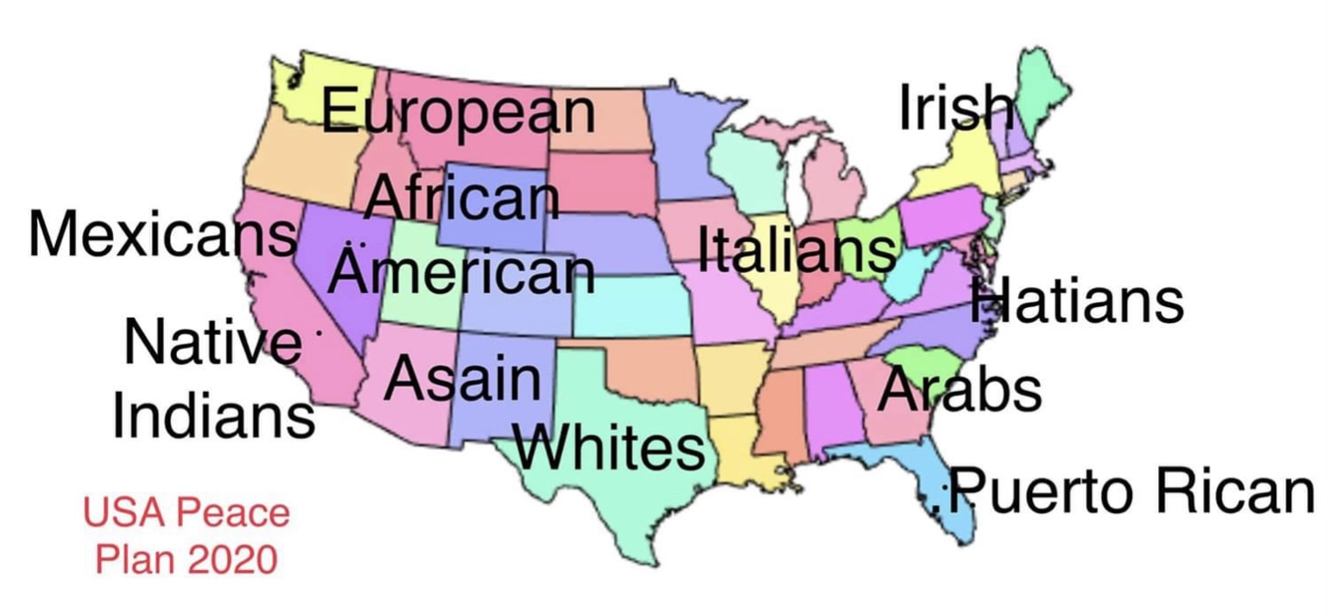 On February 1st 2020, President Trump will recognize that some races shall be granted their own states within America. Below is the path to Peace with borders drawn dividing the USA to the chosen few races.