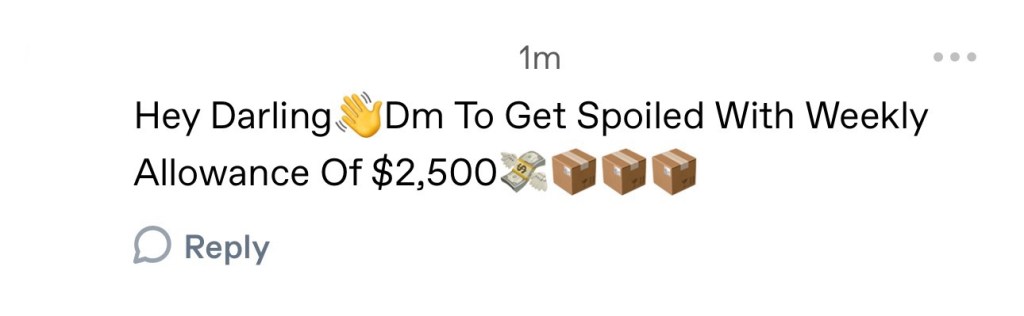 At long last, my poetry has paid off—not with literary acclaim, but cold, hard cash from a stranger on Tumblr. Who needs a Pulitzer when I have weekly direct deposits and a man who says he’s seen battle? That’s right, folks, I’m retiring to a life of luxury, sipping bargain-bin champagne while my benefactor spins tales of his heroic deeds in my DMs. Dreams really do come true. /s